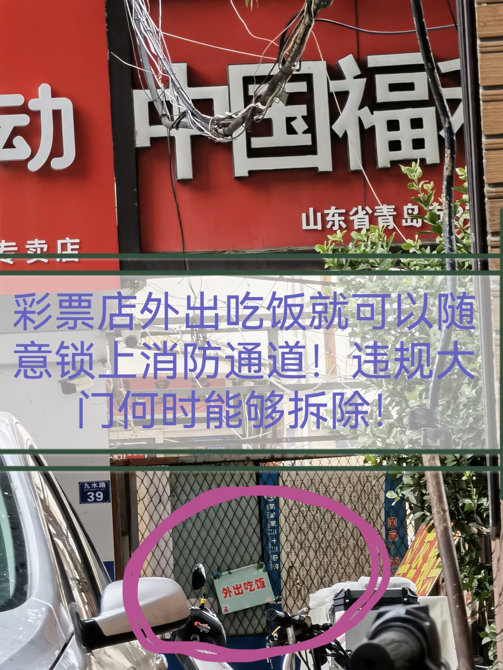 随意封闭消防通道和业主公共楼梯,造成巨大安全隐患,希望区长过来看看,违法人各种理由,就可以成为私设大门堵塞生命通道合法理由嘛?变成违建彩票店追逐利益合法保护伞?变成职能部门不拆除畅通借口吗?这个大门就拆不掉?