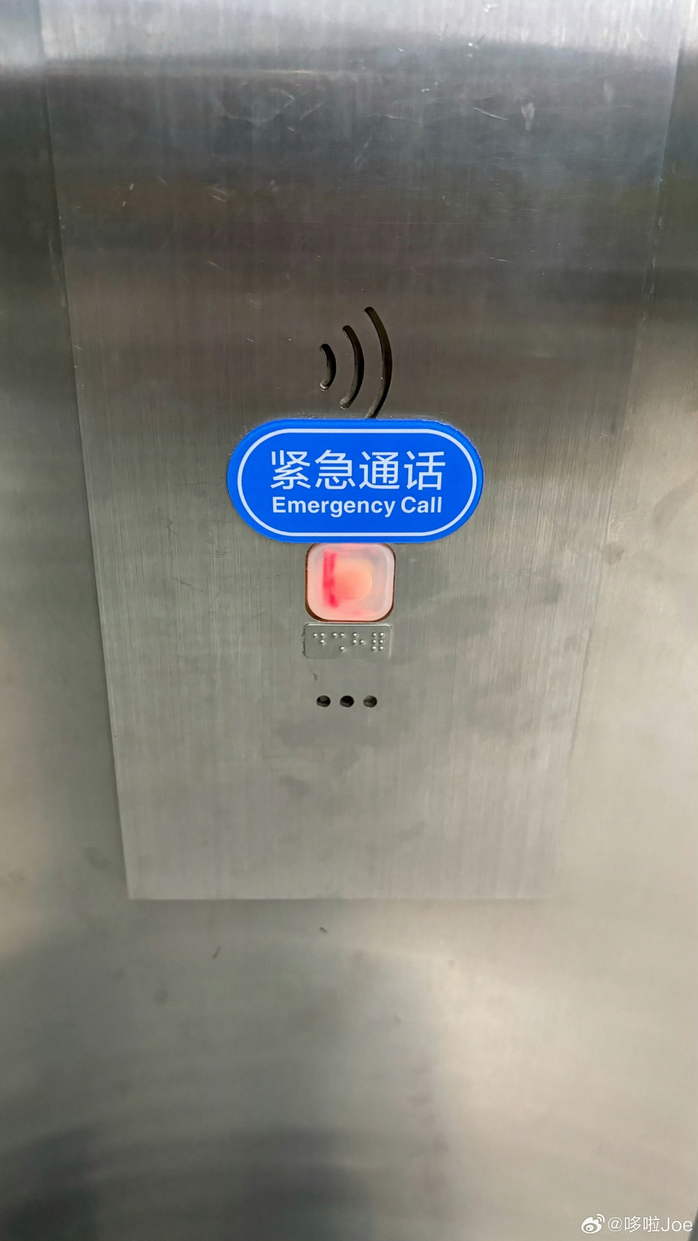 全线站外/站厅/站台/出入口通道的电梯紧急通话按钮无盲文不符合无障碍社会建设。