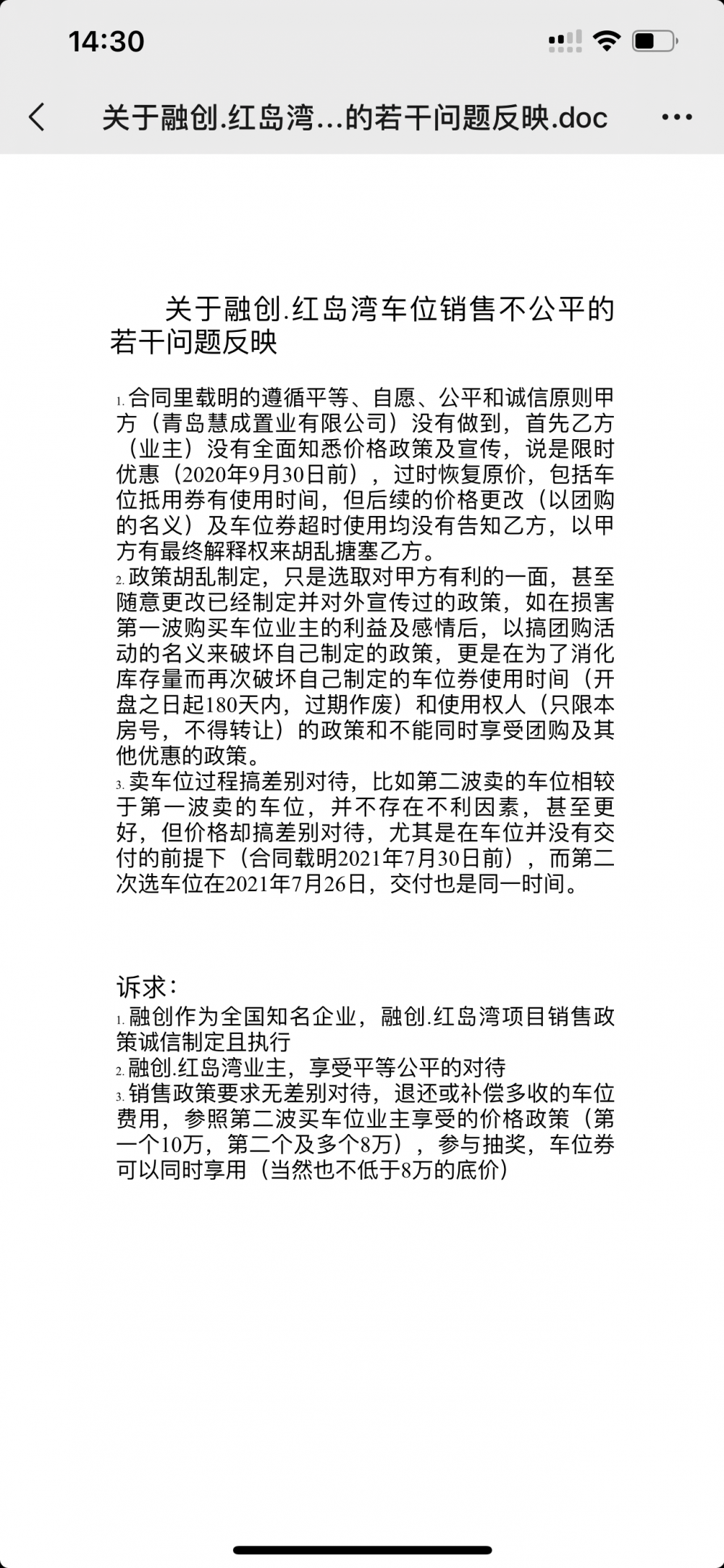 网友您好,感谢您对城阳区工作的关注和支持。关于您反映的问题,经落实,车位的价格不在《山东省定价目录》(鲁价综发【2015】123号)内,不属于物价部门政府定价、政府指导价法定职权范围。车位车库的租售价格实行市场调节价,由开发企业根据市场供求、经营状况提出,由买卖双方协商确定。