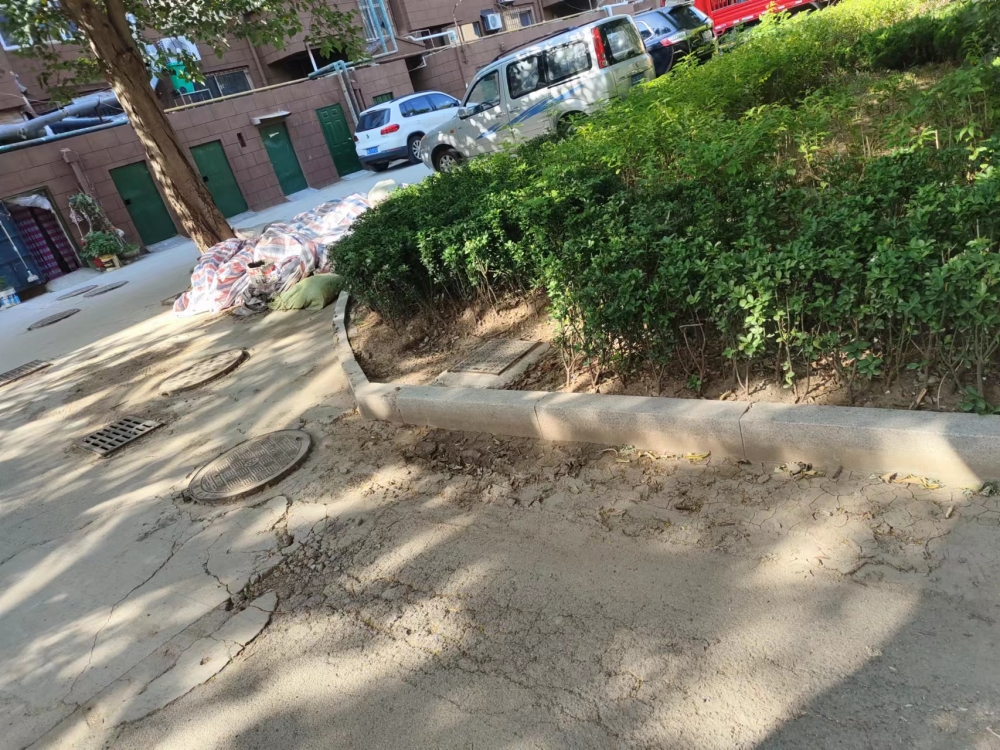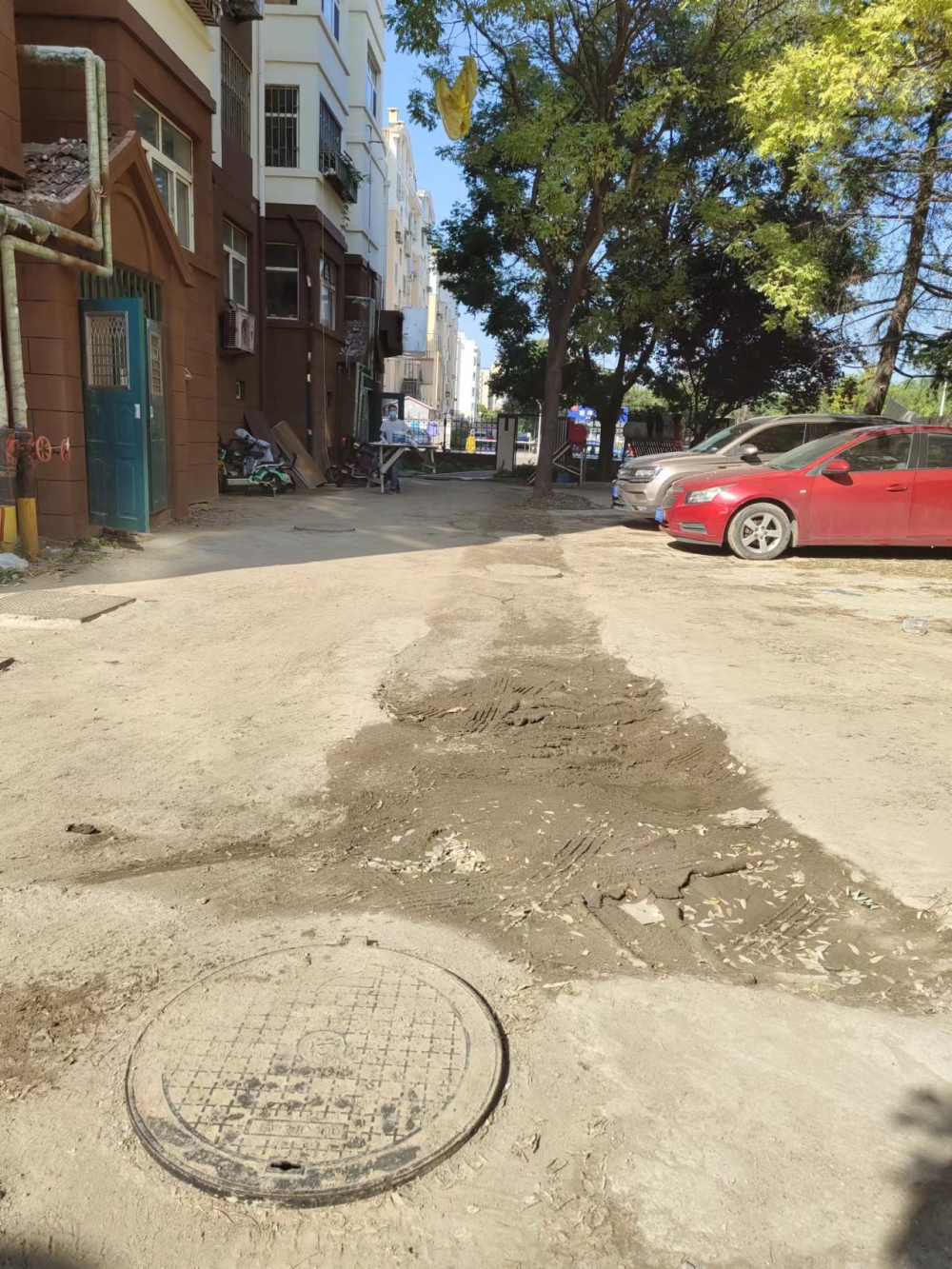 1.小区的路面自2022年3月份破路开挖之后,井盖周边破损突出地面,道路没有硬化。