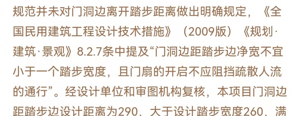 仙山花园小区边户95户型门口距离楼梯的距离设计图纸上是290mm,但经实际测量仅仅170mm,属于重大施工误差,导致门口和楼梯距离太近,存在重大安全隐患。住建局对此问题不核查,不处理,仅仅让开发商核查相关问题。请求政府介入对相关问题后续整改方式给予业主明确答复。